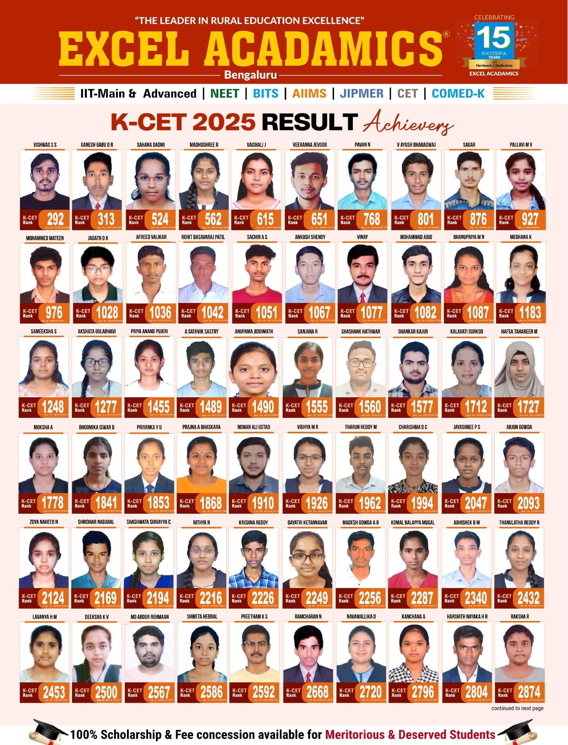 Registrations started for “LONG TERM COURSE 2026-27 CET/NEET/IIT-JEE” with separate Hostel for Boys & Girls. With “Daily Test”. For Admissions Call: 7676917777, 919513657041